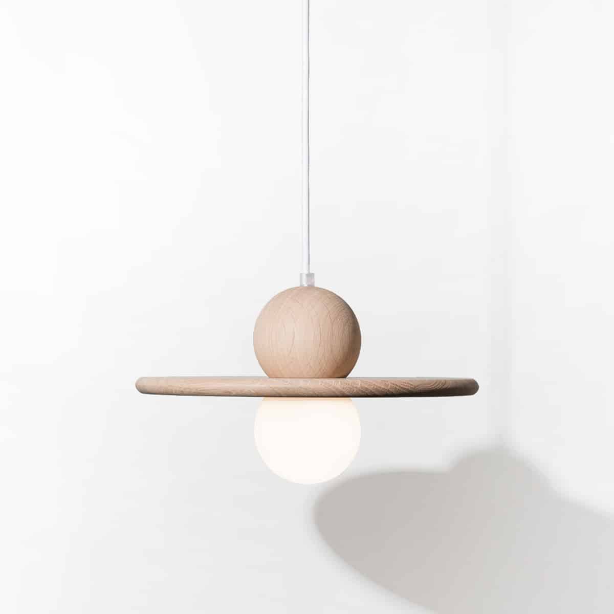La lampe Nébuleuse est discrète mais procure une lumière directe d’un blanc chaud. Cette suspension en chêne massif français représente un objet céleste flottant dans les airs avec sa sphère lumineuse. La couleur du dessous du plateau est personnalisable pour une subtile touche de fantaisie. Elle est également parfaitement adaptée pour illuminer un couloir.