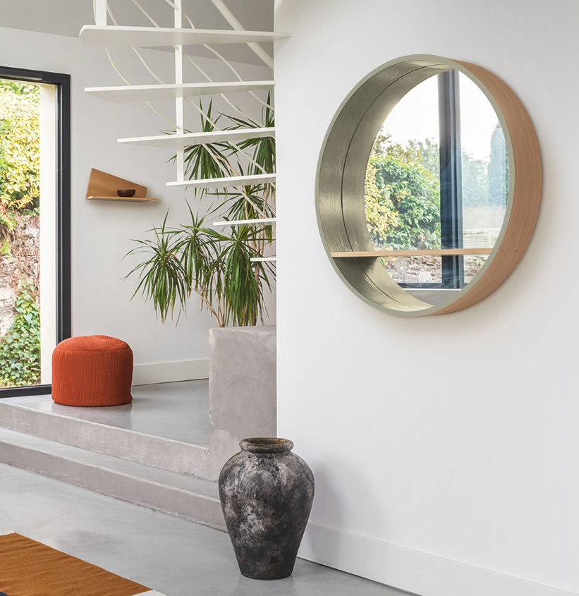 Composé de 2 demi-cercles en chêne massif cintrés à chaud, le MIROIR-CONSOLE impose sa présence grâce à ses dimensions ambitieuses. Plus qu’un miroir bois cintré, sa tablette en fait une véritable console pratique pour poser des objets, vases, lampes, livres…