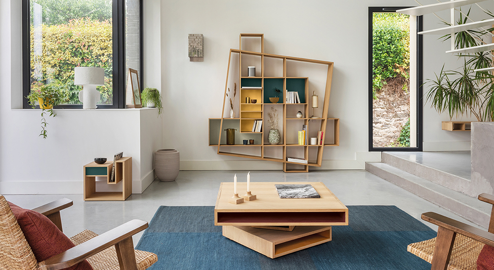 Sobre et décalée à la fois, la bibliothèque FRISCO offre toutes les possibilités de rangement d’une bibliothèque traditionnelle, l’originalité en plus : casiers plus ou moins hauts ou larges pour ranger, mettre en valeur beaux objets et livres.