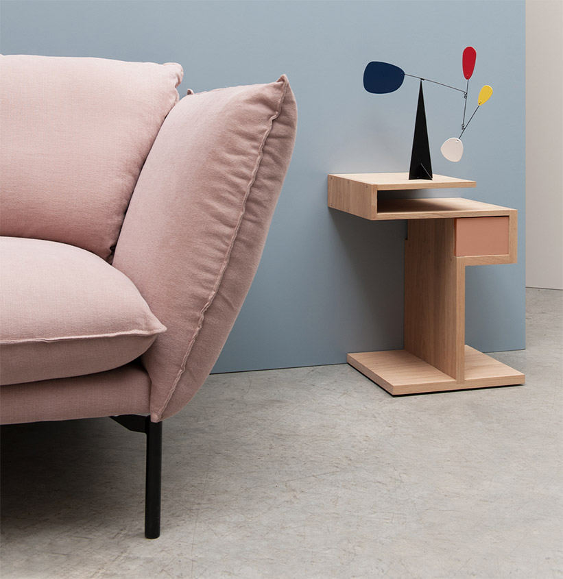 Le bout de canapé GLYCINE s’enracine solidement sur son socle et s’élève progressivement en s’amincissant. Proposé en version droite et gauche, il peut aussi être utilisé en chevet. Pratique, il est doté d’un tiroir vide-poches.