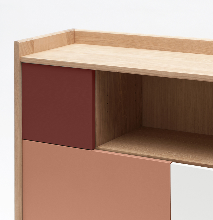 Composez votre chiffonnier : porte (3 formats possibles), tiroir ou niche, choisissez la configuration qui vous convient. De complètement fermé à totalement ouvert, de multiples combinaisons sont possibles.