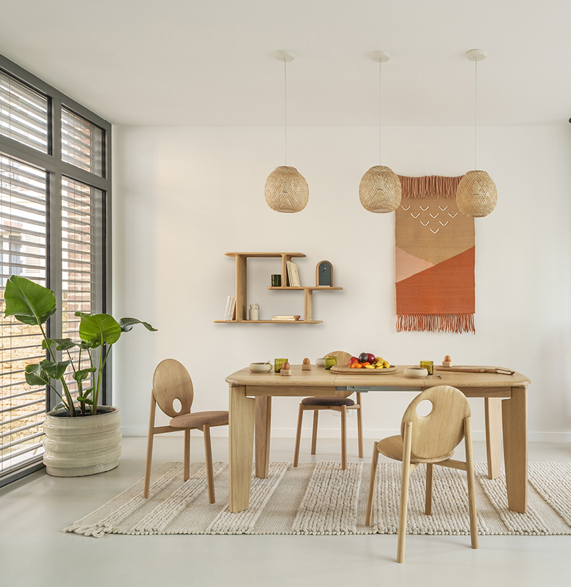 La chaise HELIO décline l’obsession pour le rond sous toutes ses formes : en creux, en plein, en extrusion.