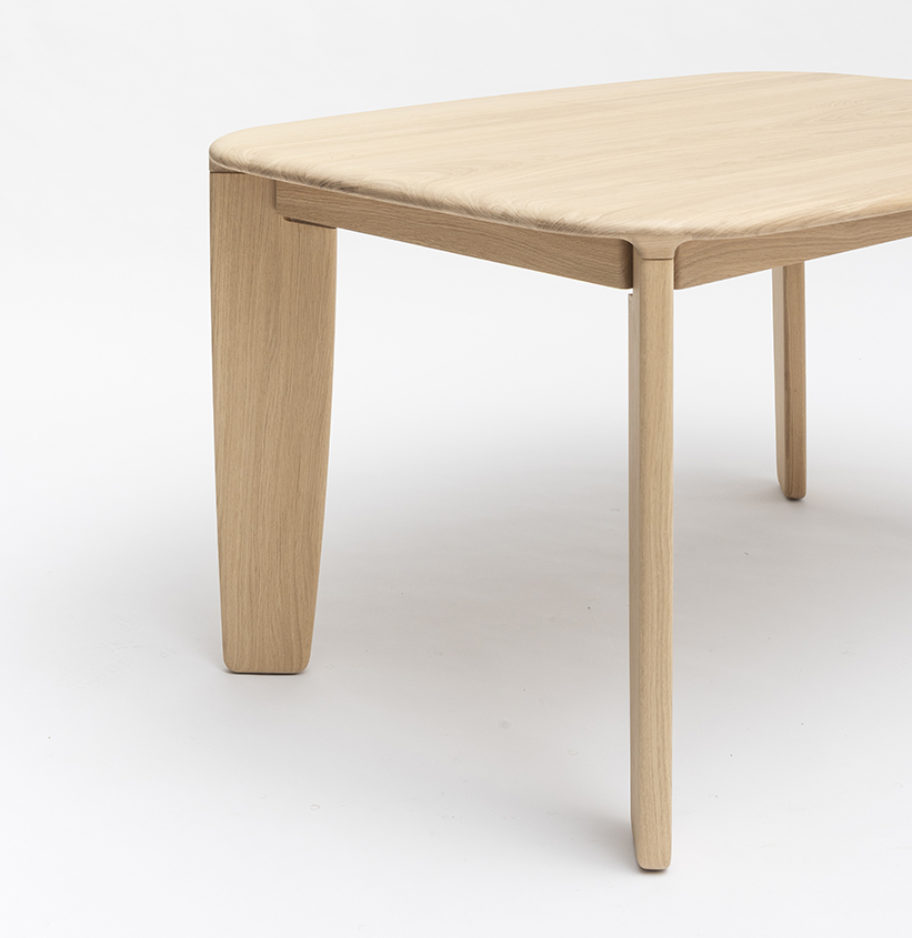 La table à manger TÉHÈME est proposée en 2 dimensions fixes et 2 dimensions avec 1 allonge et 2 dimensions avec double allonge.