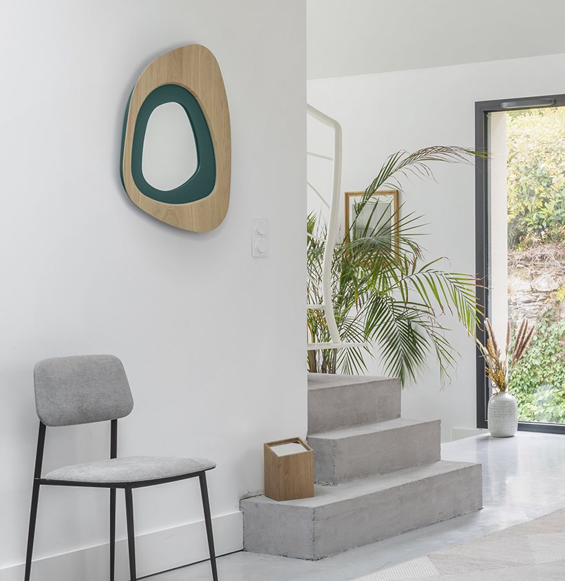 Tous ces miroirs sont fabriqués en France dans les Ateliers du Drugeot en Anjou. Dans le cadre de notre démarche éco responsable, nous travaillons avec du bois naturel uniquement, provenant de forêts françaises gérées durablement. Nos miroirs ont des zones de couleurs personnalisables. Notre gamme de laque standard offre douze coloris différents.